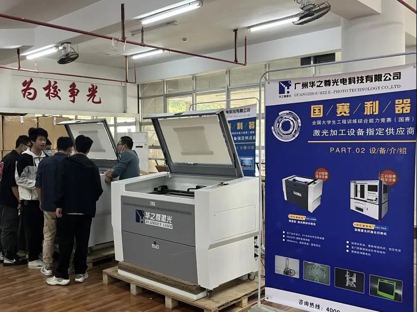 本次大賽采用的是我司研發、生產的,也是目前各大高校與先進制造企業常用的一款精密型非金屬切割雕刻一體機HZZ-V4000作為競賽中“激光加工”競賽環節的指定專用設備之一,我司倍感榮幸,為了完全保障競賽的順利開展,我司還安排了技術人員在比賽現場指導參賽選手正確操作,全力為參賽選手能拿到好成績做服務!