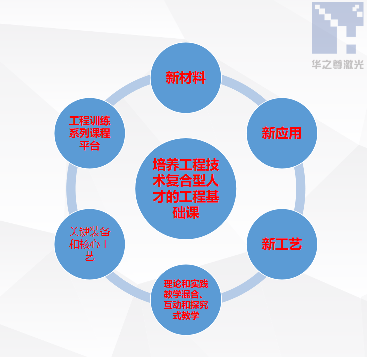 以特種加工-激光精密加工對特定功能新材料的制造為基本出發(fā)點,牽引其它制造方法于整個產(chǎn)品中;教學(xué)過程與制造方法相結(jié)合的學(xué)習(xí)模式;